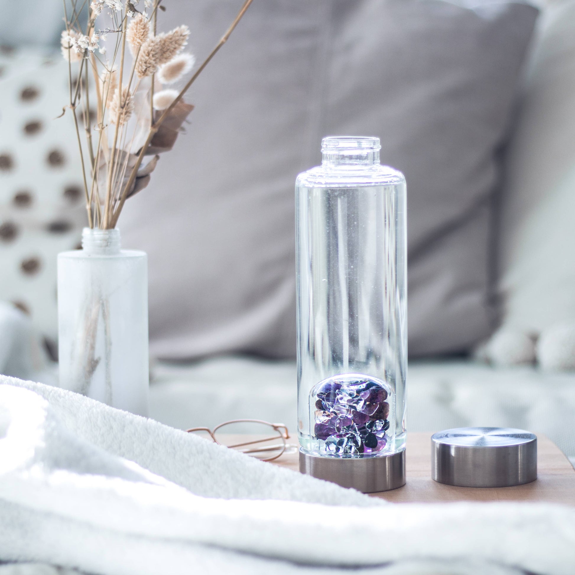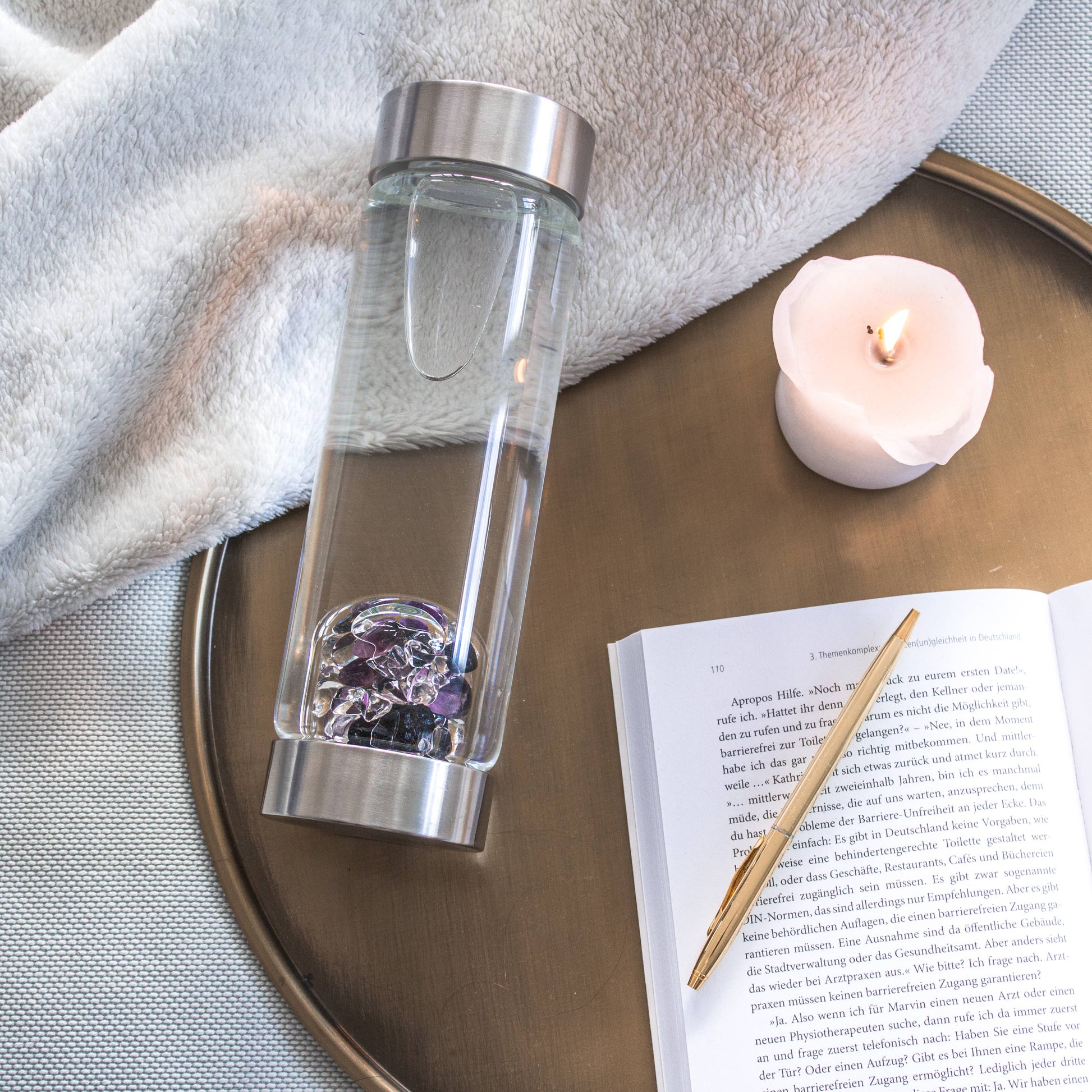 Ia ädelstenflaskan GUARDIAN med ädelstensmodul Turmalin (svart) | ametist | bergkristall