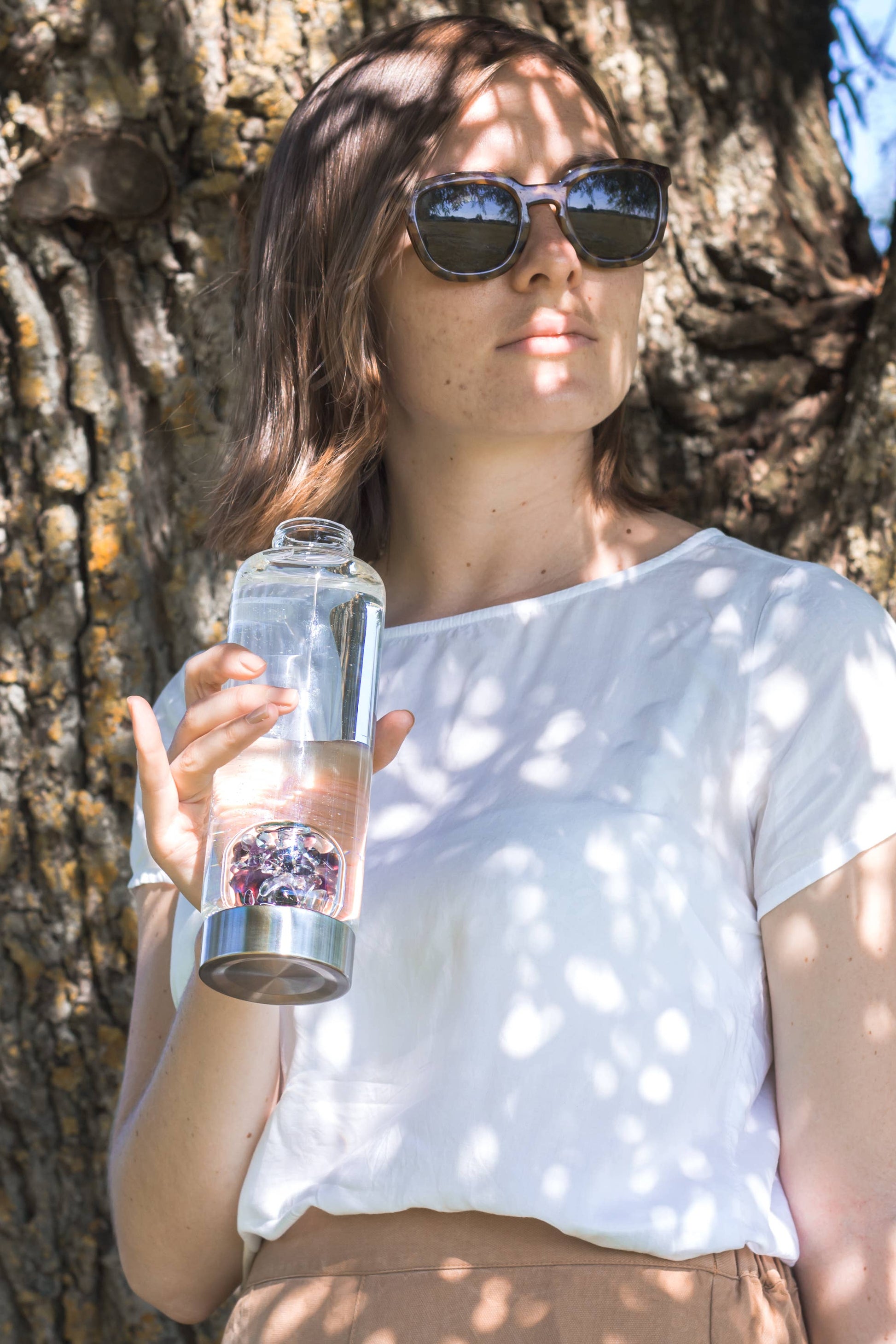 VIa är den perfekta följeslagaren. Den robusta glasflaskan är oumbärlig för dig som vill njuta av ditt himmelska ädelstenvatten när du är på språng.